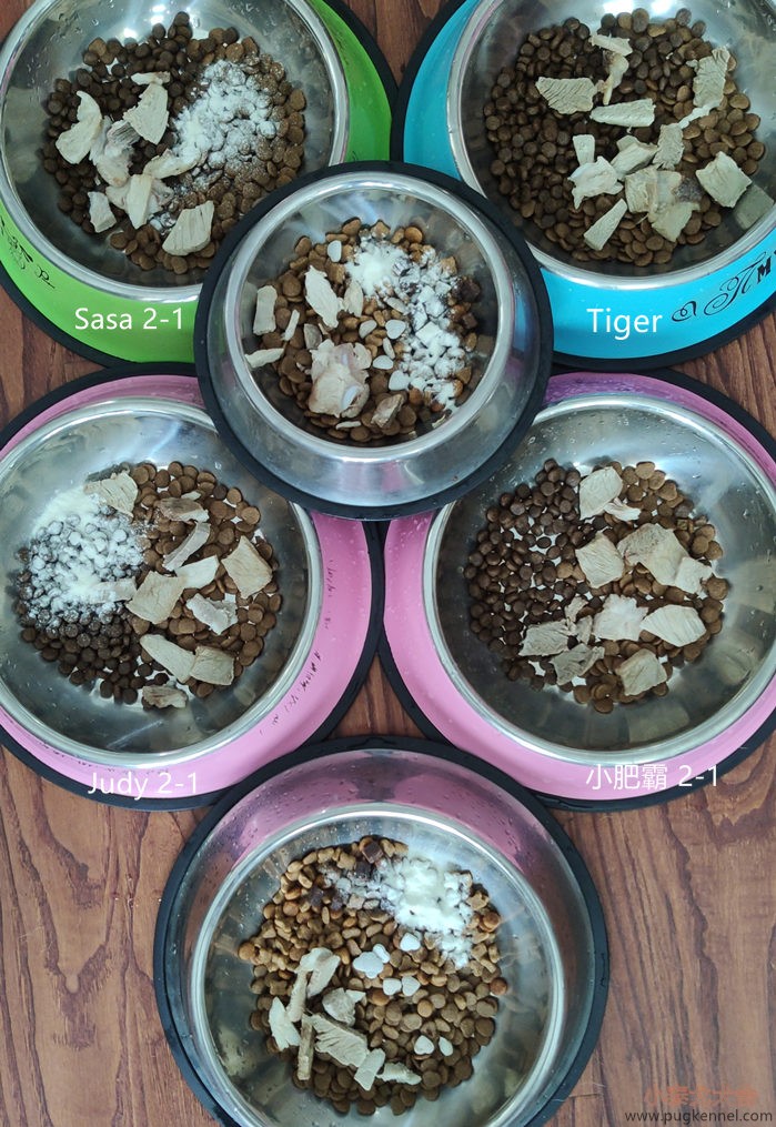 所有狗狗均添加瘦猪肉,瘦猪肉的制作过程在18周周报里有记录。