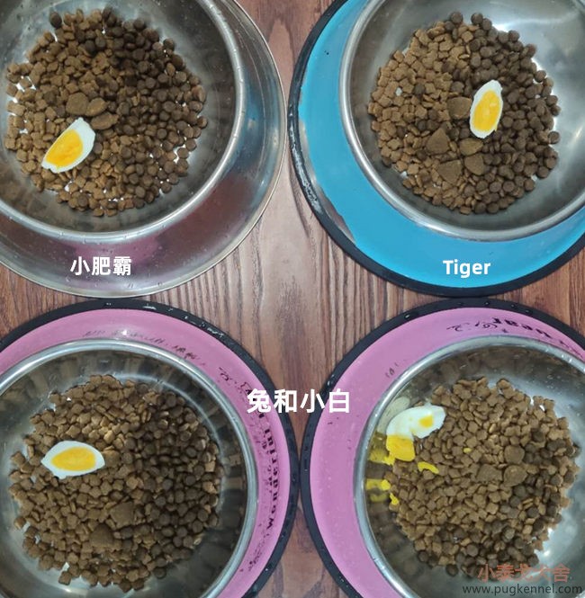 小肥霸:狗粮为海洋之星以及奶糕,应该添加了液体钙;添加1/4鸡蛋以及微量元素和钙片;